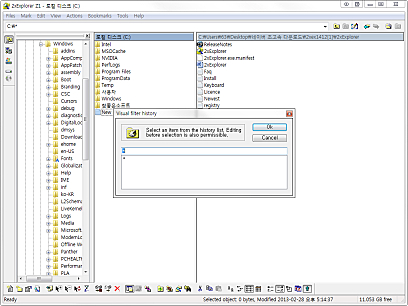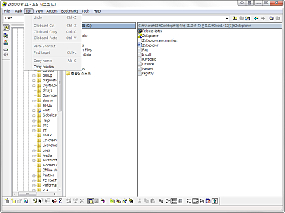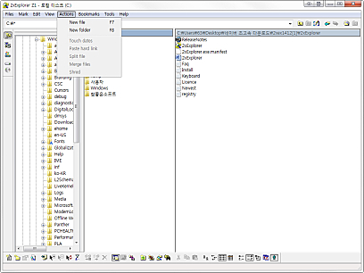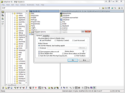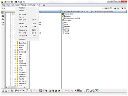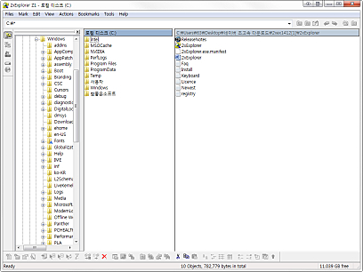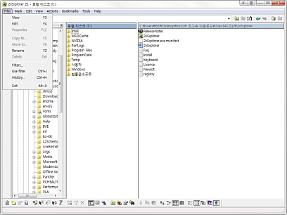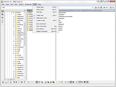 상세정보 정보 제공 폴더의 세부 정보를 알 수 있고 프로그램 상단의 텍스트칸에 도스 명령을 실행하면 도스 창으로 결과가 나타납니다. 편리한 인터페이스 이미지나 문서의 미리보기가 가능하고 탐색기와 같은 구조로 사용하기 편리합니다. 그리고 두개의 창의 내용을 같게 만들 수 있습니다.