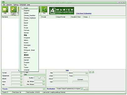 상세정보 벨소리 제작 기능 간단하게 사운드 파일을 벨소리로 만들 수 있습니다. 다국적 언어를 지원 한국어를 포함한 다양한 언어를 지원합니다. 드래그 앤 드롭 지원 드래그 앤 드롭을 지원하여 좀 더 편리한 인터페이스를 제공합니다. 기타 기능 다양한 스킨과 재생 목록, 그리고 태그 에디터를 지원합니다.