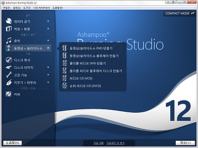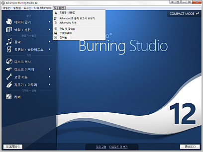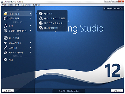 데이터 굽기, 음악 굽기, 비디오 굽기 등 다양한 방식을 통해 CD 및 DVD를 굽거나 복제할 수 있으며, 간략하게 구분된 각각의 기능은 다음과 같습니다.