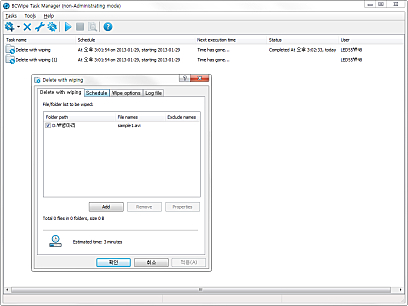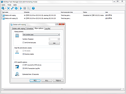 사용자가 컴퓨터를 켜거나, 로그온 하기 전 또는 컴퓨터 종료 및 로그오프 시에 와이핑 작업이 진행되는 예약작업이 가능합니다.