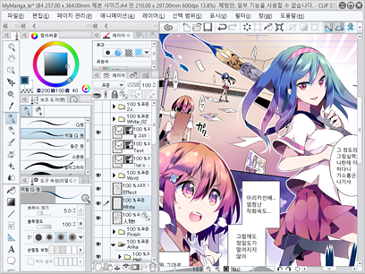 * 말풍선과 효과선 그리기, 컷 분할 등의 작업을 전용 도구로 간단하게 할 수 있습니다.
