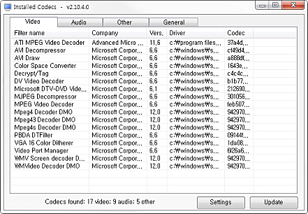 사용자의 컴퓨터에 설치되어 있는 코덱을 검색하여 해당 코덱에 대한 기본 정보는 물론 상세 정보까지 제공해주는 유용한 프로그램입니다.