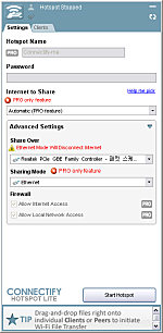 Wi-Fi 접속 설비 마법으로 핫스팟에 연결된 두 장치에 어떠한 크기의 파일이든 간편하게 드래그 앤 드랍으로 공유하고 동일한 네트워크에 핫스팟 사용자를 연결 할 수 있습니다.