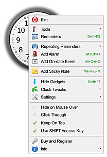 아날로그 시계 창의 형태로 현재 날짜와 시간을 확인할 수 있으며 알람 및 포스트잇 등 다양한 기능을 사용할 수 있는 유용한 시계 프로그램입니다.