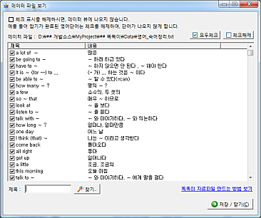 * 영어, 일어, 중국어등 다양한 학습파일 선택 기능