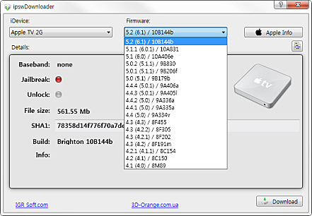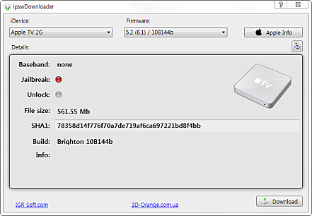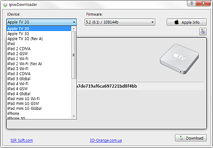 iPhone, iPad, iPod, Apple TV 등 Apple 사의 모든 디바이스를 위한 펌웨어 다운로드 기능을 제공합니다.