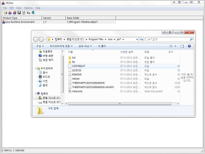 Java Runtime Environments와 Java Development Kits의 버전과 설치에 대한 정보를 사용자에게 알리고, 프로그램의 실행을 도와주는 프로그램입니다.