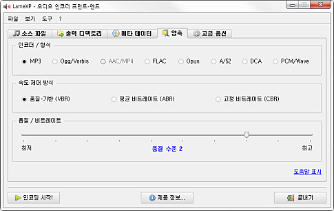 품질 기반, 비트레이트, 고정 비트레이트 기분의 압축 방식을 지원합니다.