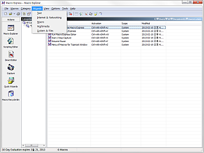 처음에는 두개의 매크로파일, samples.mex(샘플 매크로의 집합)와 macex.mex(사용자가 생성하고 저장할 수 있는)이 있습니다.