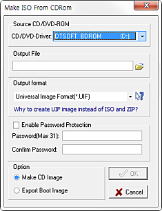 ‘Make CD/DVD Image’ 기능을 통해 사용자가 소유한 CD에서 이미지 파일을 생성할 수 있습니다.