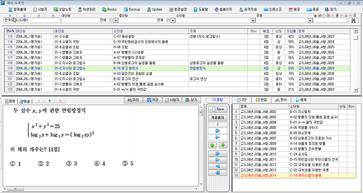 * 수강기간 동안의 학생이 다룬 전체 문제중 맞은문제, 틀린문제, 설명받은 문제, 실수한 문제, 스스로 고친문제 등등을 검색할 수 있고 문제를 보면서 다시 재출제 하여 시험때 활용할 수 있습니다.