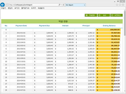 * 웹 페이지 특정 영역을 MS Office의 Excel로 변환시켜줍니다.