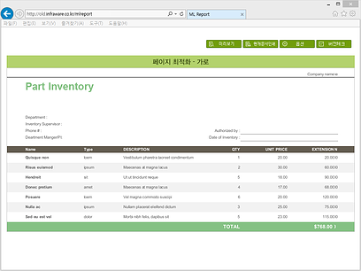 * ML Report 기능을 적용한 웹 페이지를 프린트로 인쇄하기 전에 모니터에서 미리보기로 인쇄 결과를 미리 보는 기능입니다.