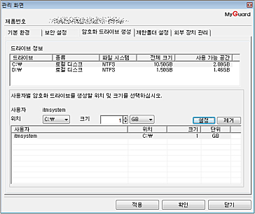 사용자가 용량을 지정하여 가상 암호화 드라이브를 생성합니다. 암호화 드라이브는 로그인 정보를 알고 있는 본인만이 접근 가능합니다.