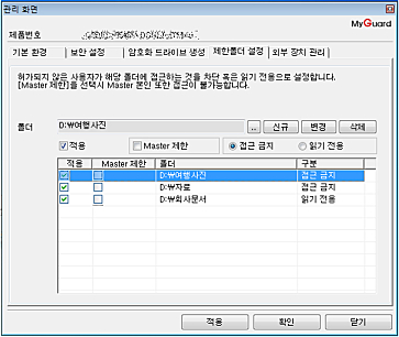 특정 파일이나 폴더를 읽기 전용 또는 접근 금지로 지정이 가능하여 더 안전한 파일 관리가 가능합니다. 그리고 Windows 탐색기와 연동되어 마이가드가 실행중일 때 마우스 우클릭으로 손쉽게 지정이 가능합니다.