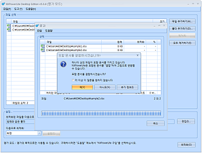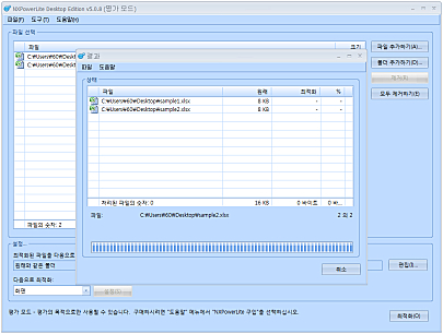 최적화 할 파일의 목록을 작성하는 NXpowerLite 창에 드래그해 한 폴더에 여러 파일을 최적화 할 수 있습니다.