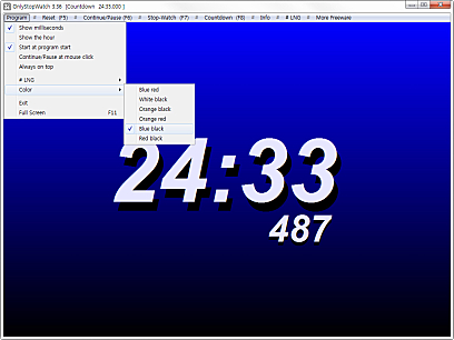상세정보 스톱워치 기능 시작, 중지를 핫키로 설정하여 천분의 1초인 밀리초까지 체크가 가능한 세밀한 스톱워치 기능을 제공합니다. 풀화면을 지원하여 큰 화면으로 카운트 다운이 가능합니다. F5키로 스톱워치의 시작/중지가 가능합니다. F6키를 이용해 일시정지를 할 수 있습니다.
