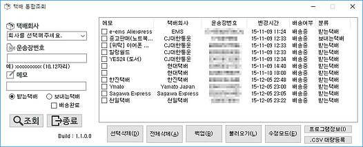 택배 사별 운송장과 메모를 등록하여 수시로 편리하게 조회할 수 있도록 만들어진 프로그램입니다.