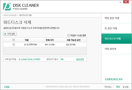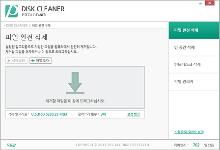 개인정보·기밀정보 등 주요정보 삭제 시 복구가 가능한 일반적인 삭제방법을 대체하여 복구가 불가능하도록 데이터를 완전 삭제하는 기능을 수행하는 프로그램입니다.