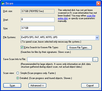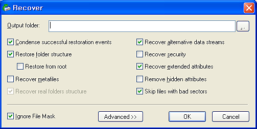 하드 디스크의 파티션 구조가 변경, 손상된 경우 디스크를 스캔하여 이전 파티션을 찾은 후에 그 파티션에서 파일 복구를 시도합니다.
