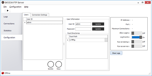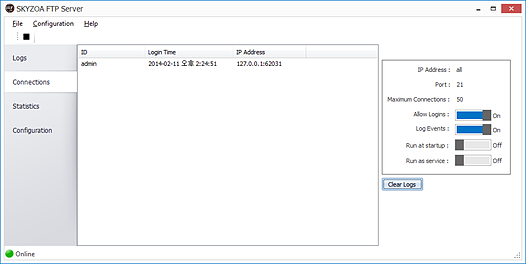 상세정보 프로토콜 FTP(File Transfer Protocol) 최대접속수 무제한 연결모드 Active/Passive 모드 서버모드 어플리케이션모드 윈도우즈서비스모드(라이센스 구매고객에 한함)