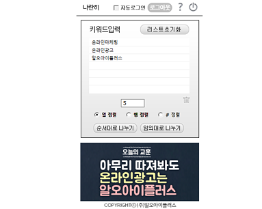 다수의 키워드를 행 혹은 열에 맞추어 정리할 수 있으며 해시태그를 삽입하여 소셜미디어에 바로 활용할 수도 있는 프로그램입니다.