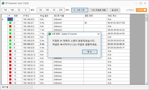 * 기업의 경우, 특히 전산실에서 IP 사용 현황을 확인하고 CSV 파일로 변환할 수 있어 관리가 용이합니다.
