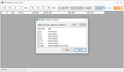 * 각 IP 별 확인하고 싶은 포트 번호 목록을 설정할 수 있습니다.